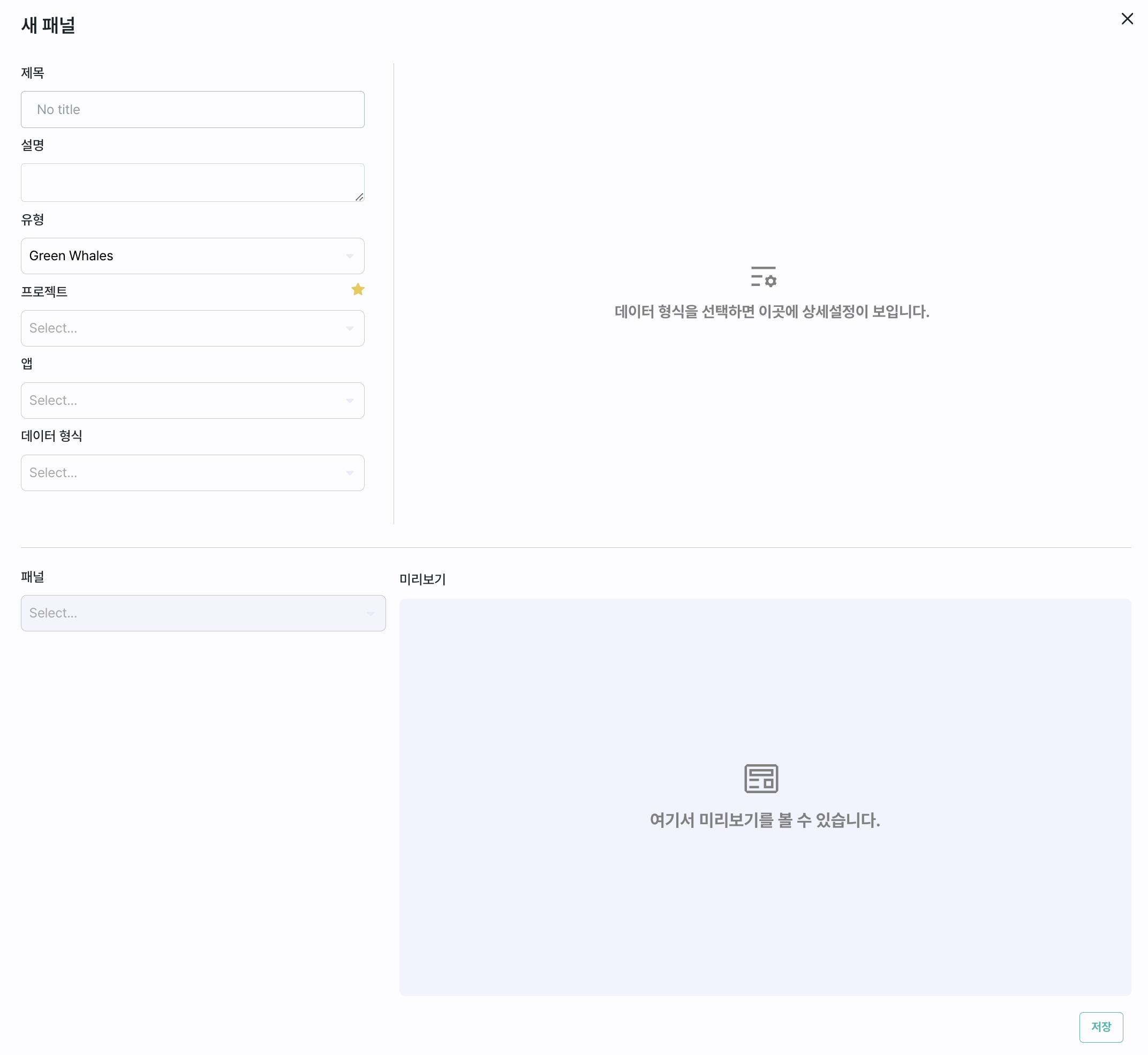 화면 상단의 추가 버튼을 클릭하여 Green Whalse 유형의 새로운 패널을 생성합니다.