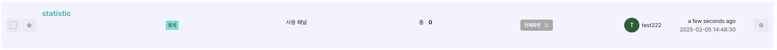 | 액션 아이콘 | 패널 관련 메뉴 - 수정 : 패널 정보 수정 - 데이터 탐색 : 데이터탐색 페이지 이동 - 테이블 컬럼 순서 : 테이블 컬럼 순서 변경 - 내보내기(csv) : csv파일 다운로드 - 삭제 : 패널 삭제 |